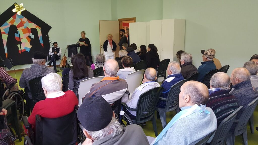 Angela ci ha raccontato a tutti noi e a suo nipote Claudio, che la coccolava durante la lettura, il Natale del passato. “È bello ricordare il Natale dei tempi passati, i tempi in cui eravamo “poveri” , non avevamo quasi nulla, ma eravamo più uniti”.
